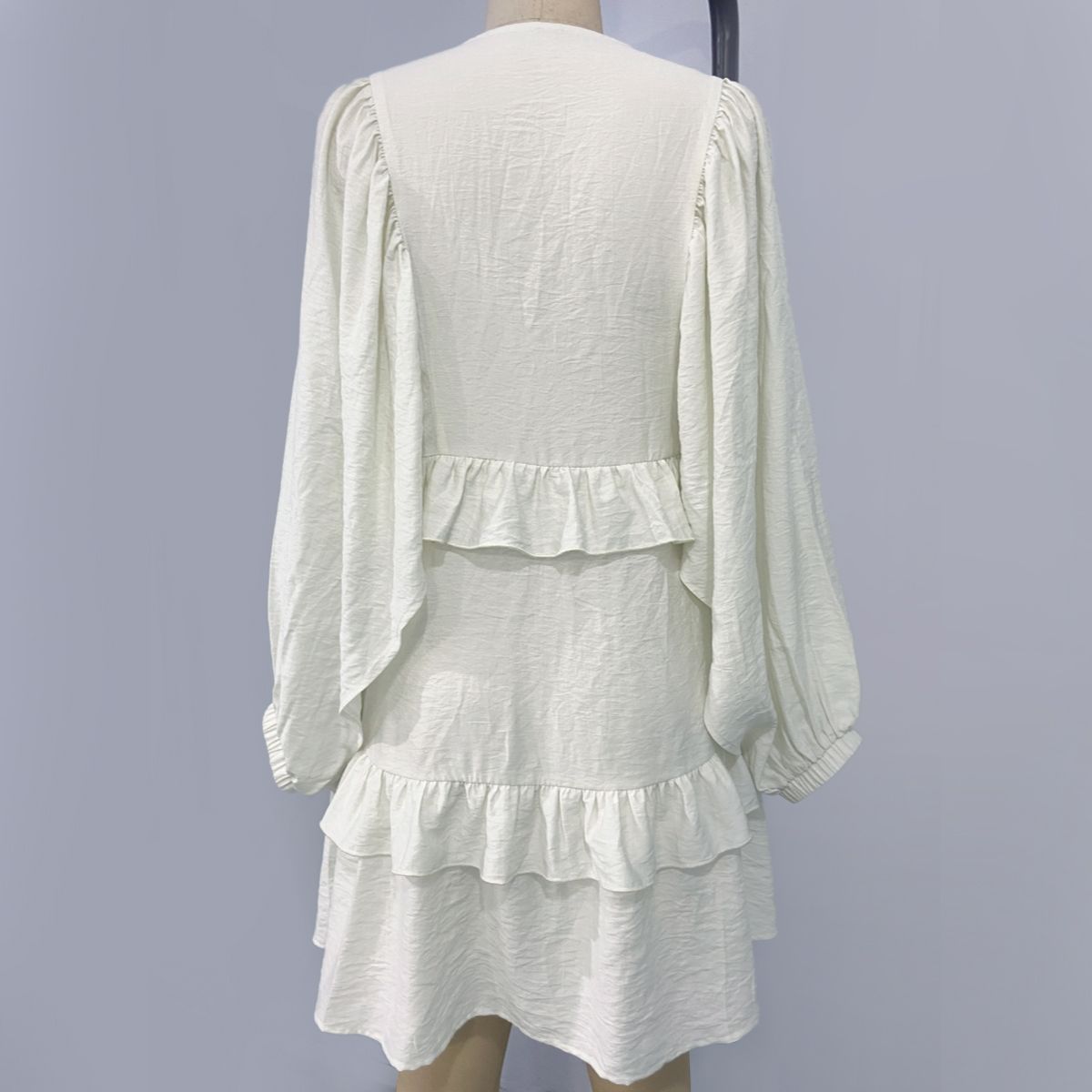 Shop Cream – Colored Round – Neck Puff – Sleeve Ruffled Dress