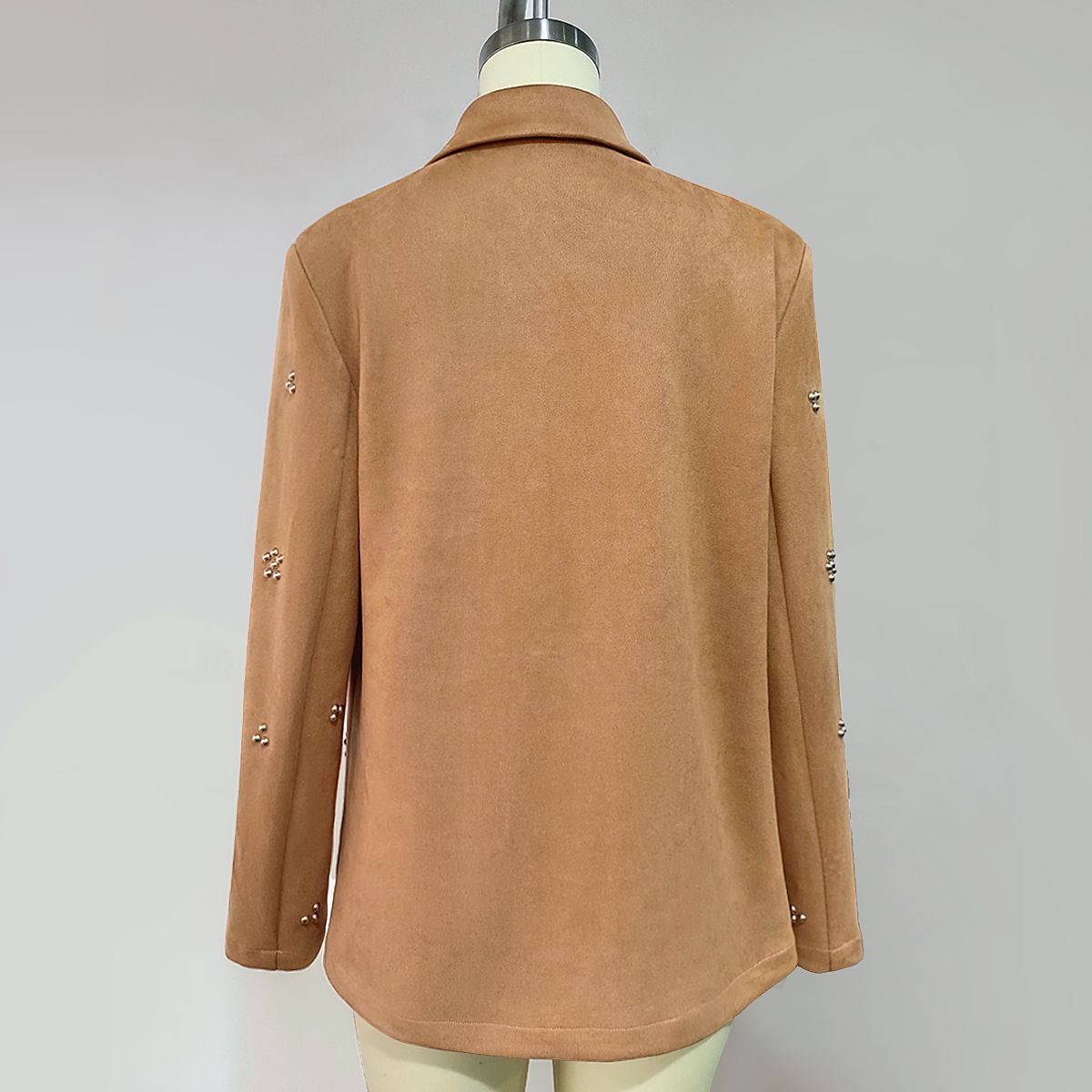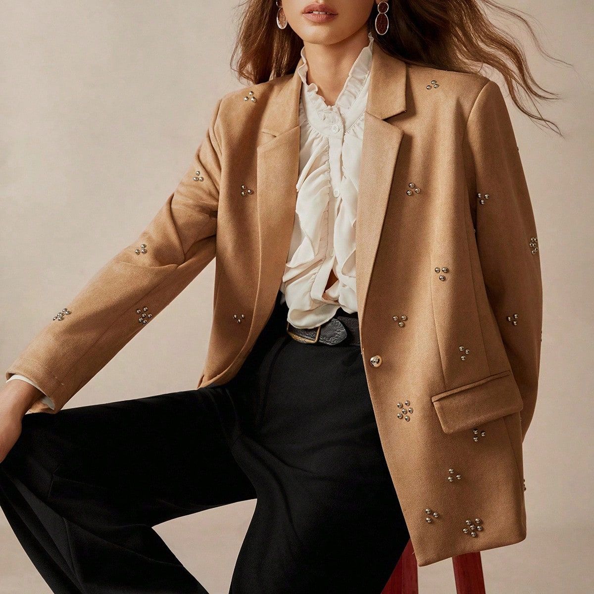 Shop Khaki Double – breasted Decorated Blazer with Matching Office – style Ensemble